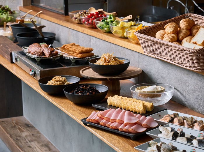 ホテルユニゾ名古屋駅前の朝食メニューは、ご当地料理のハーフビュッフェが付いた和洋の選べる定食2種です。