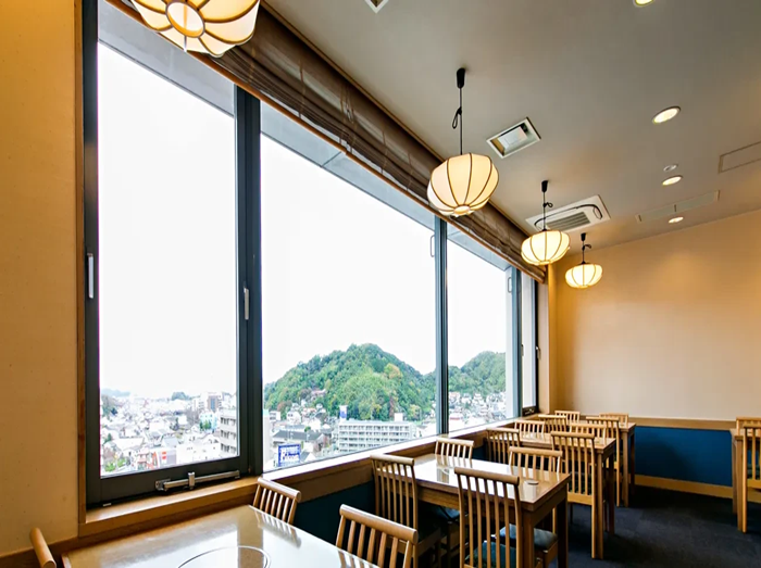 遠く日本海まで見渡せる眺望のよいお席で、地元食材を使用した朝食をお楽しみ下さい。