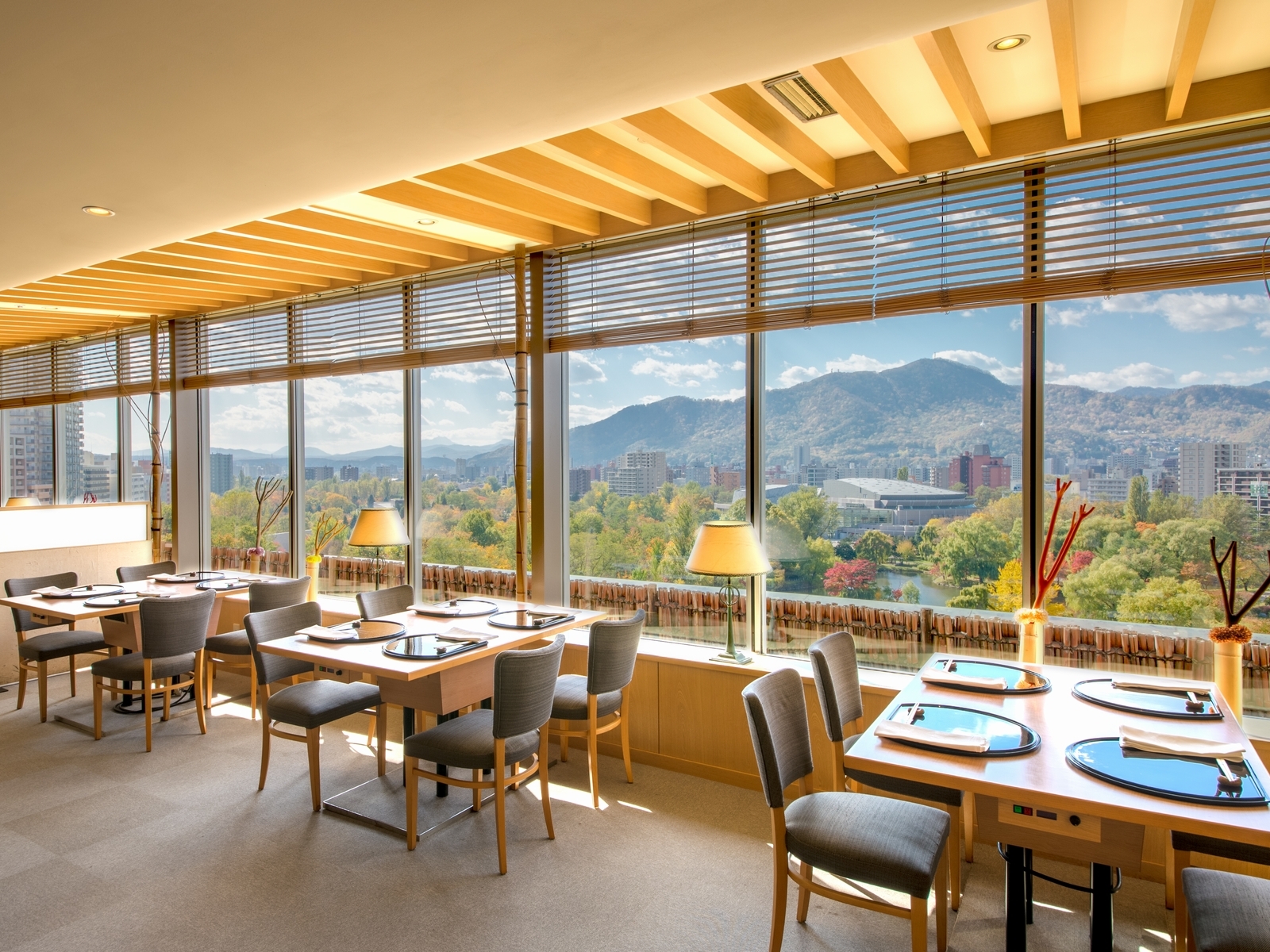 ホール席からは窓の外に広がる四季折々の美しい景観を愉しめます