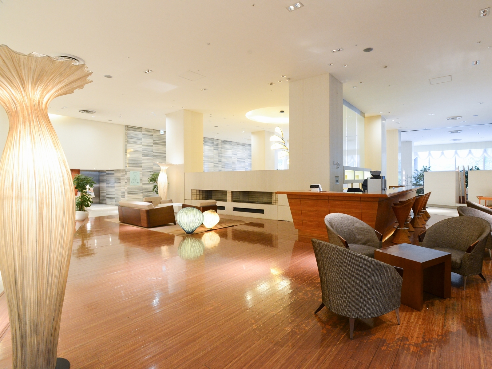 朝は日差しが差し込む1階ロビーでゆったりと!