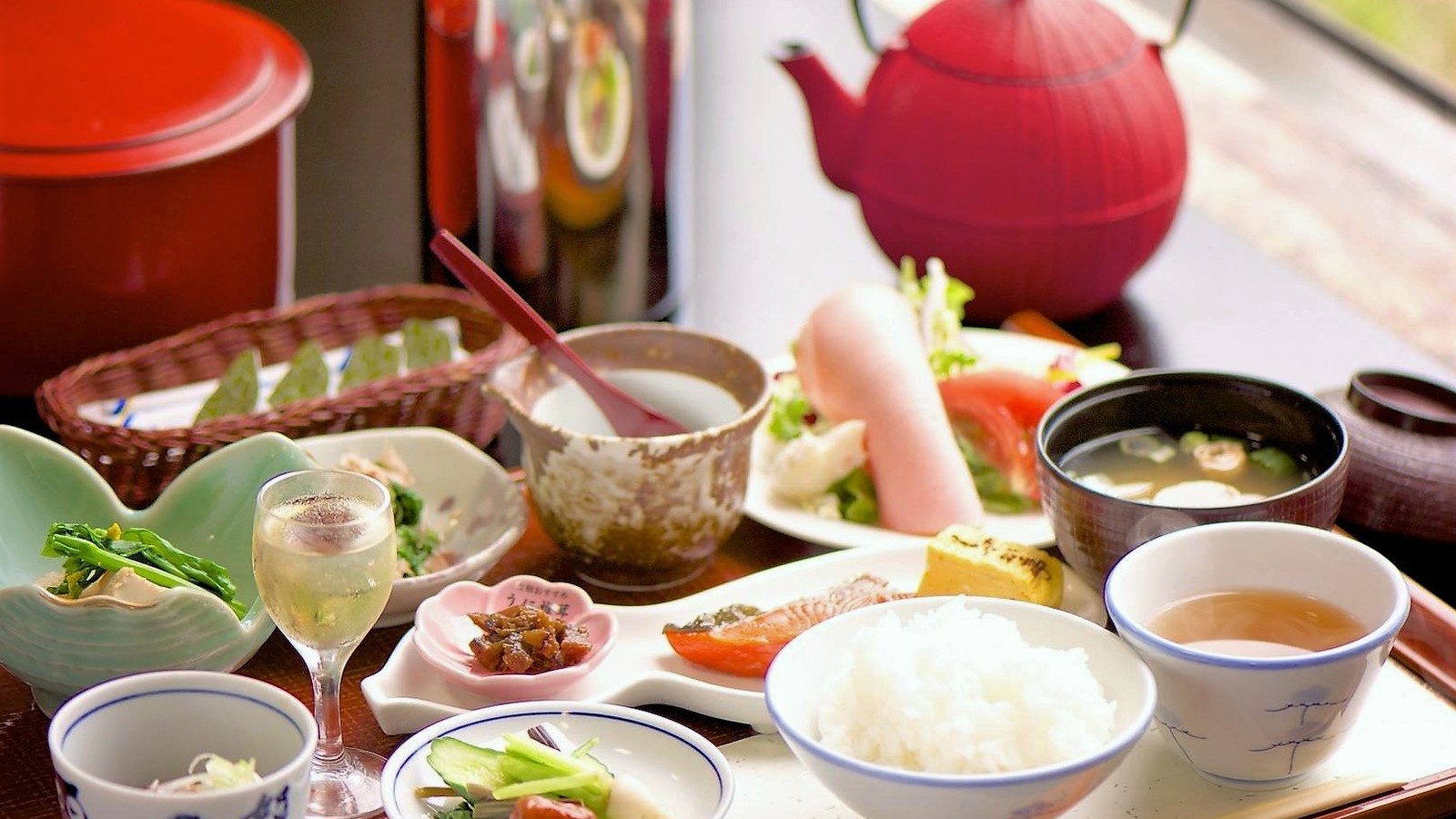 野菜、サラダ、焼き魚、だし巻たまご、煮物など栄養バランスを重視!