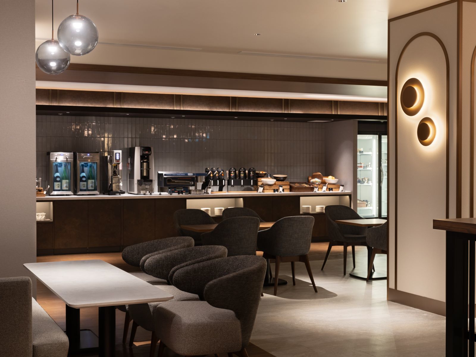 オーブンレンジ、コーヒーサーバーを設置し、まるでリビングのようにくつろげる空間をご提供いたします。