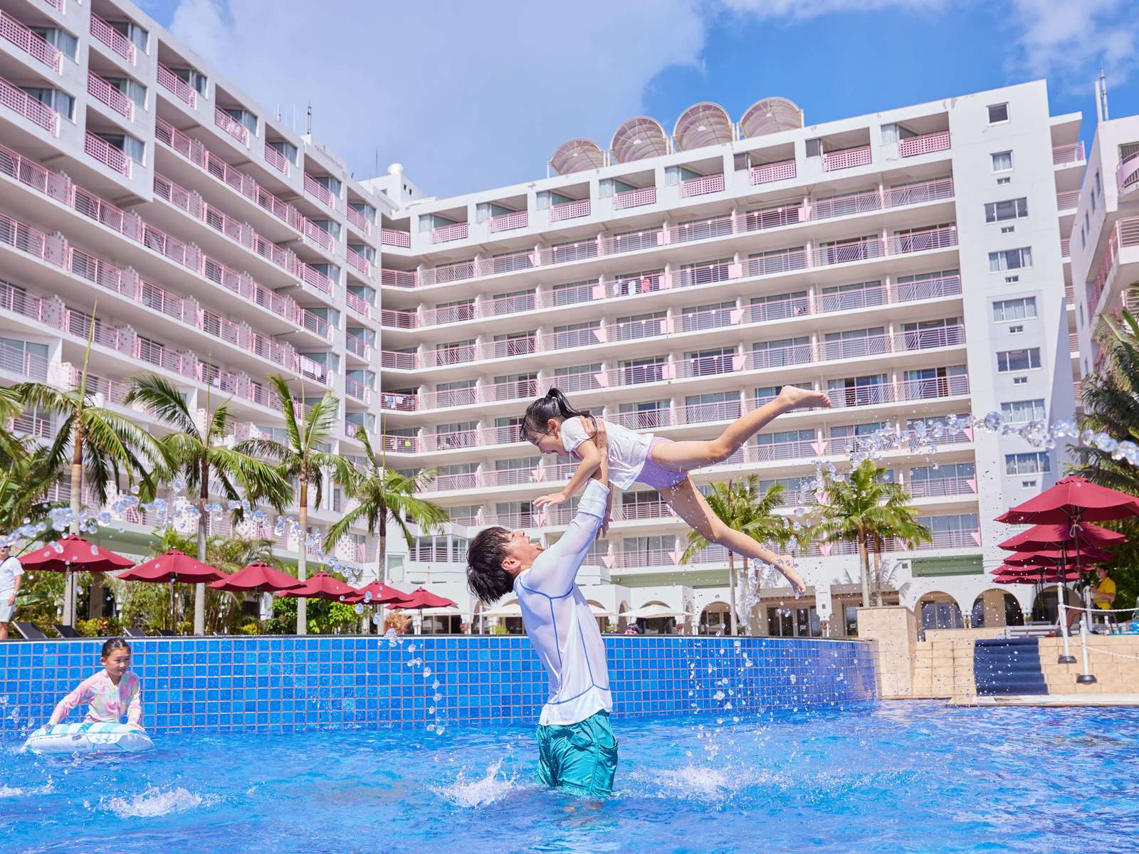 ホテルマハイナ ウェルネスリゾートオキナワ、オーシャンビューの客室、大型プール、大 浴場等、リゾートを快適に過ごす施設が整っています。
