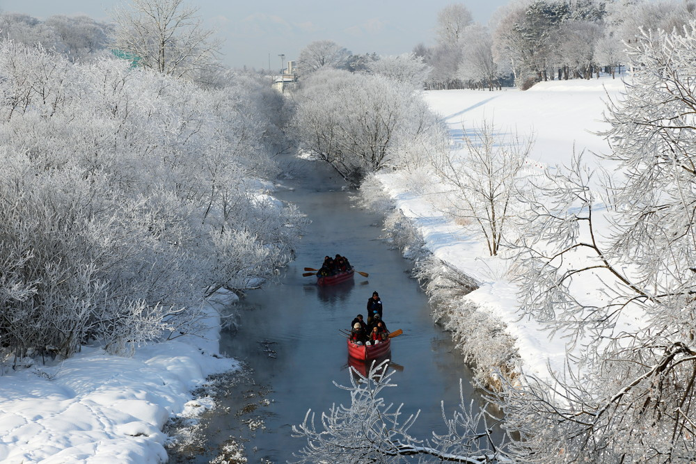 「霧氷」という樹枝に付着した川の水蒸気が凍る現象を見ることができます。