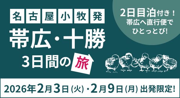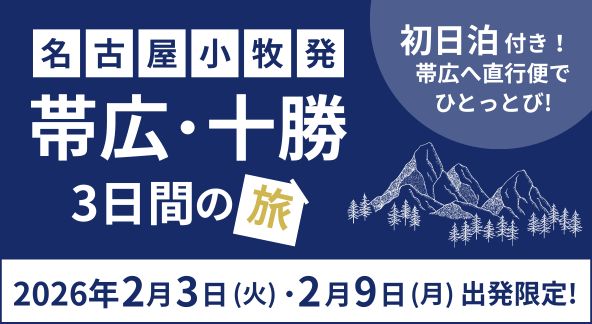 三日間の銀世界旅行!旅の始まりはお任せ!気ままに楽しむ帯広たっぷりツアー★ ★直行チャーター便でひとっとび!GOGO!北海道★グルメと温泉の帯広3日間【初日泊フリープラン】