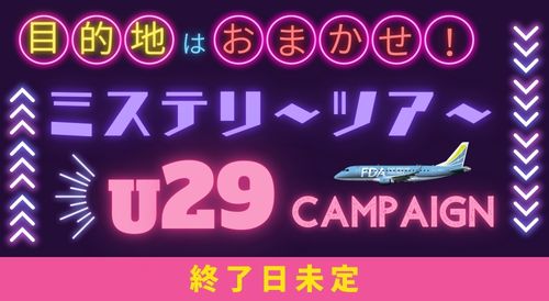 【U29限定!26年3/29〜4/28搭乗】⇒13日12:00発売開始☆お申込み時は行先不明なドキドキ旅!