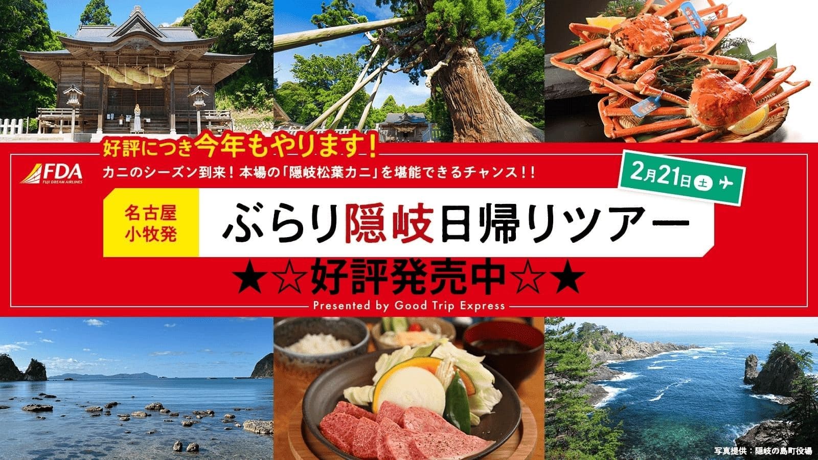 カニの季節がやってきた!!FDAチャーターで行くぶらり隠岐日帰りツアー(フリープラン)