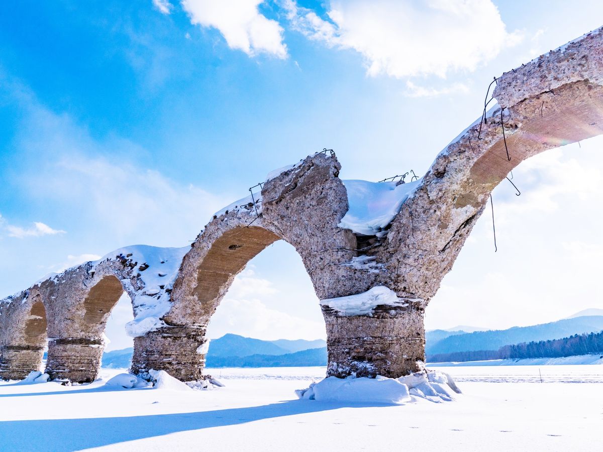 タウシュベツ川橋梁、白樺並木、オンネトー、ハルニレの木、ジュエリーアイスで大自然の絶景に触れるもよし。
